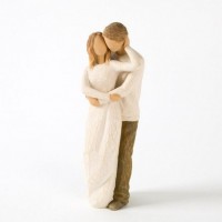 ceramic figurine of a man and woman embracing each other in an affectionate pose. The figures are designed to represent