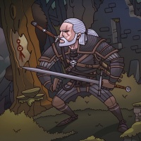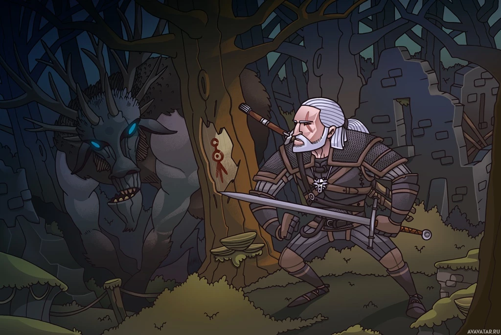 The image depicts a character known as Geralt from "The Witcher"