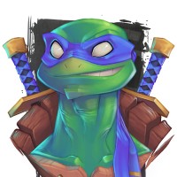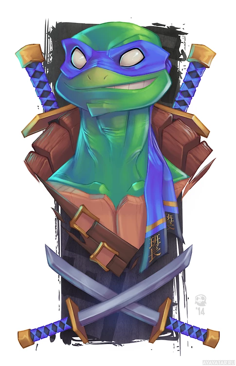 Mutant Ninja Turtles franchise. The character depicted here is Leonardo, who is known for his blue mask and