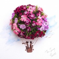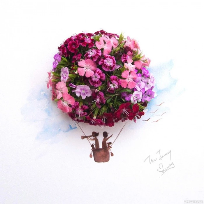 a piece of paper or canvas. Above the flowers, there's