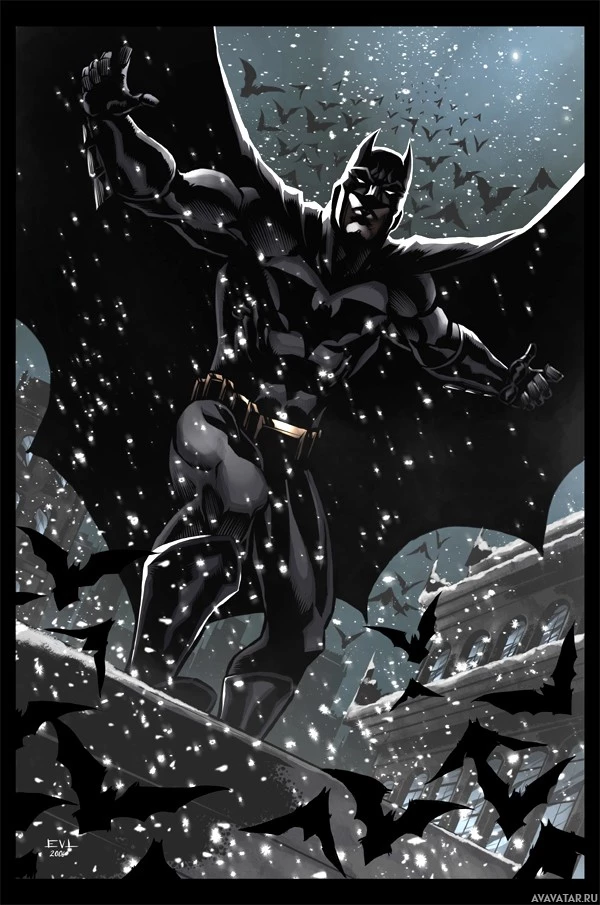 a visual motif often associated with the character. The art style suggests it's from one of the comics or graphic novels featuring Batman, a popular superhero known for his role in fighting crime in