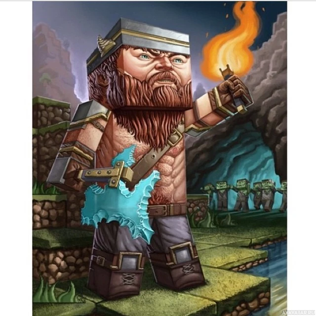 a Minecraft character. This character is depicted with exaggerated facial features, including