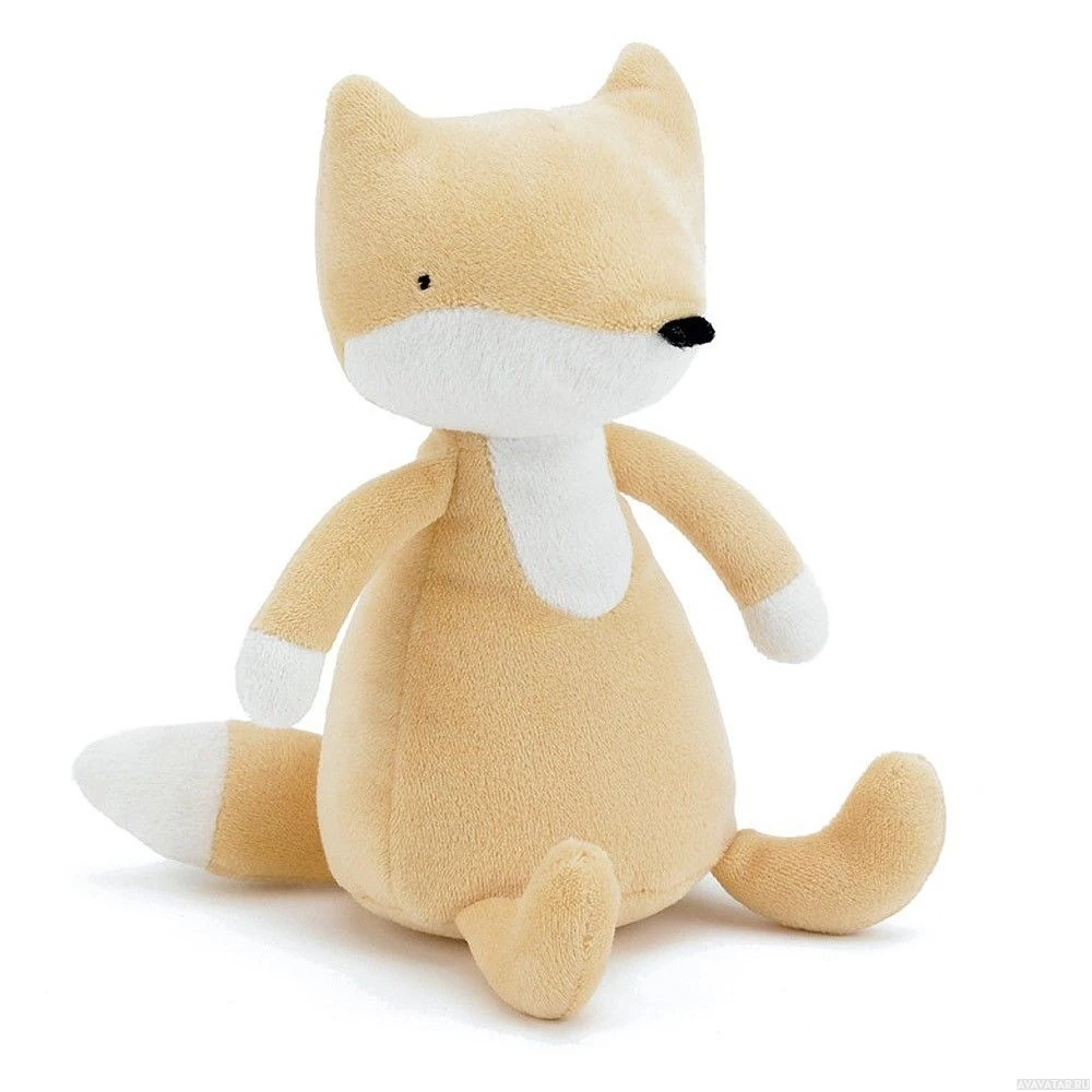 a stuffed animal in the shape of a fox. It appears to be designed as a cuddly toy and has features such as a soft texture, plush fur, and