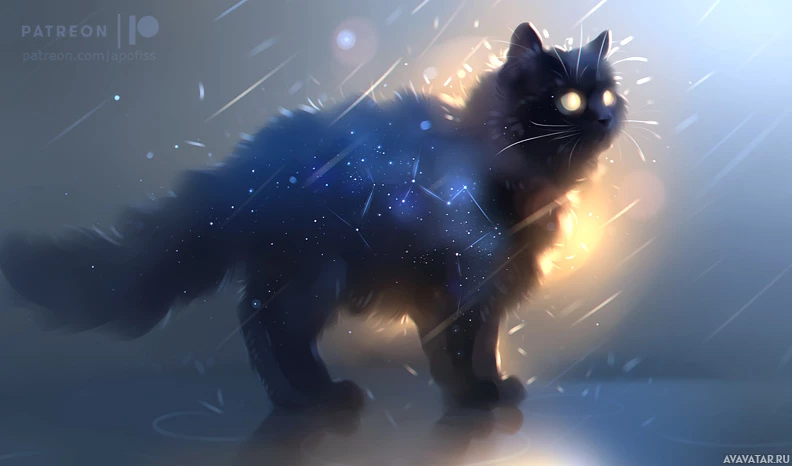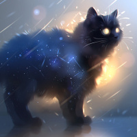 an actual cat but rather a stylized, possibly fantastical or anthropomorphic version of one, given the context and style of the image.