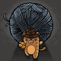 cat character wearing a fedora-style hat, reminiscent of Indiana Jones. It appears to be holding a map in one hand and a whip in the other, suggesting that it is on an adventure or exploration. The style of the drawing is playful with bold outlines and vibrant colors, which gives it