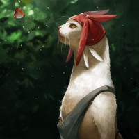 cat character. The cat has a red bandana around its head and appears to be looking upward with