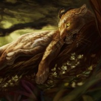 the soft lighting. The leopard has its eyes open but seems calm and at ease in this environment.