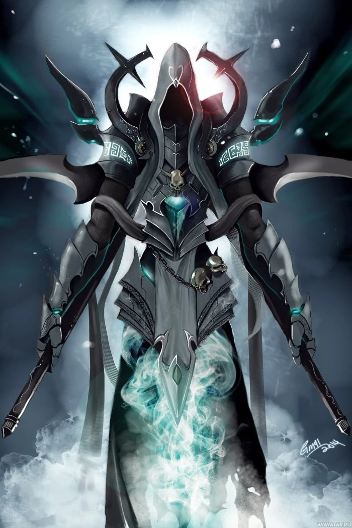 game series. The character is depicted with armor and a mask, giving off a mystical or supernatural appearance. The art style suggests it could be from