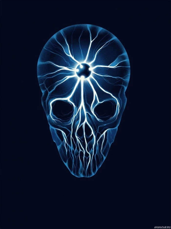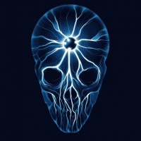 The image depicts a skull with electrical impulses emanating from the brain area, suggesting a theme of neural activity or perhaps