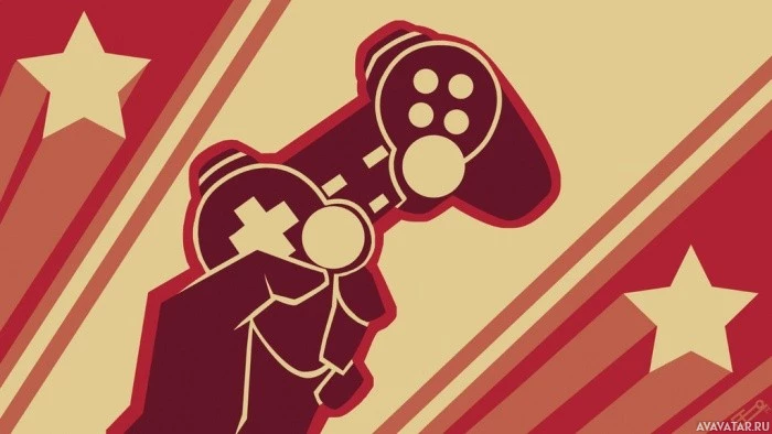 gaming culture, or a fusion of classic game controllers with the iconic imagery of Soviet propaganda.