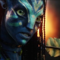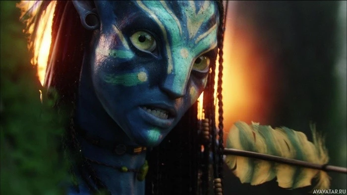 The image depicts a character from the movie "Avatar," which is an American science