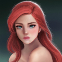 На картинке изображен анимированный персонаж, который выглядит русалкой с яркими голубыми глазами и рыжими волосами, что напоминает Ариэля из мультфильма Disney «Русалочка»