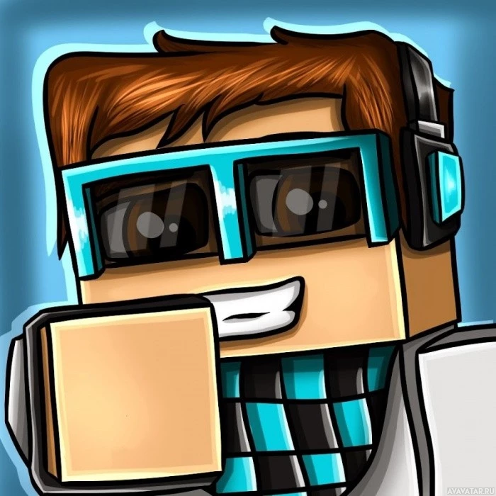 animated character that appears to be inspired by the Minecraft game. The character has
