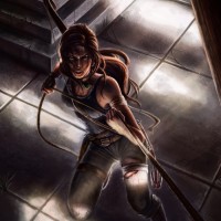 The image depicts a character who appears to be Lara Croft, the protagonist from the video