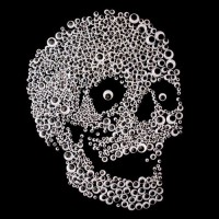The image features a skull with what appears to be eyes inserted into the sockets. This is likely an artistic representation, possibly designed to evoke themes of life and death or perhaps related to