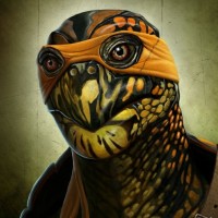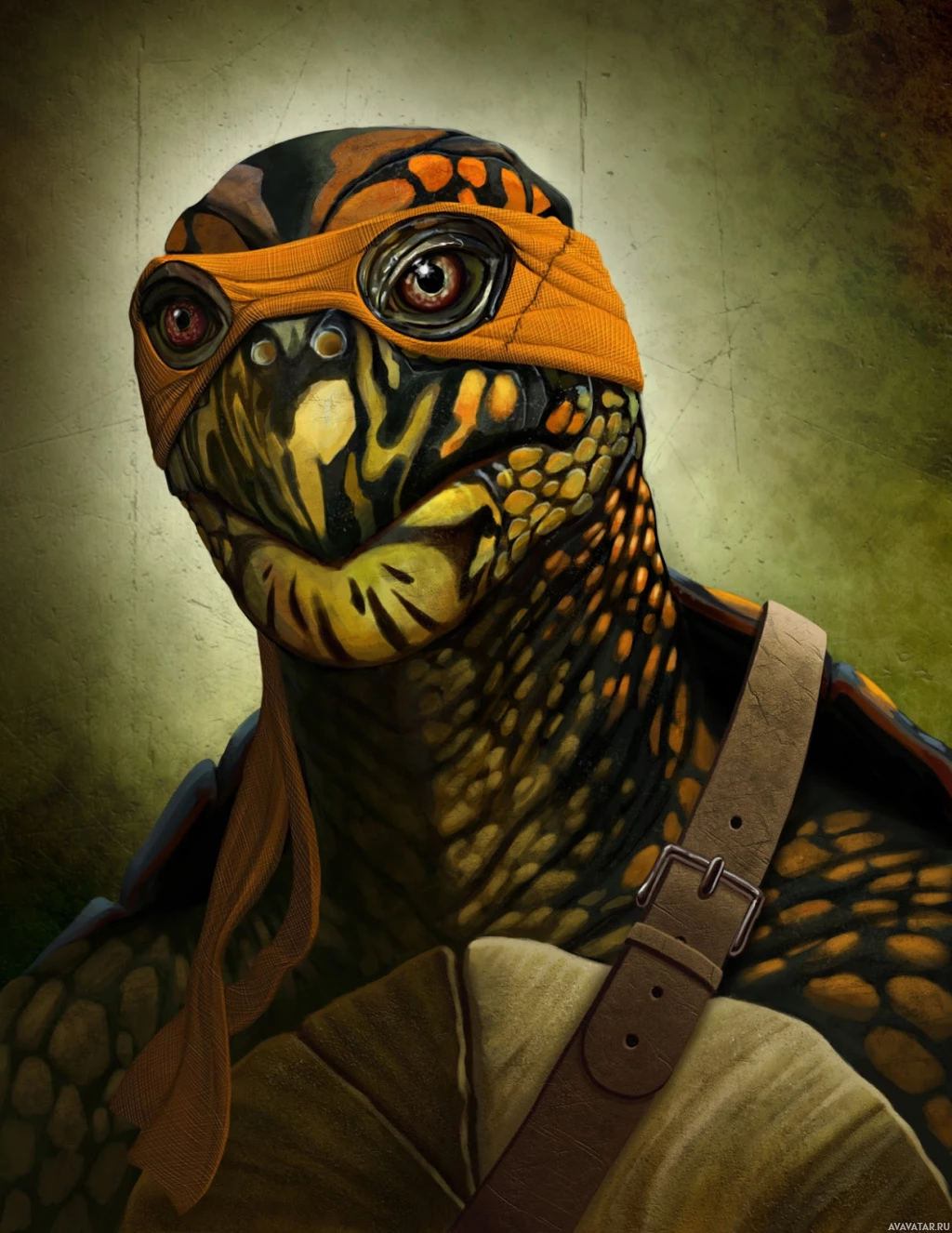 The image shows a character that appears to be Michelangelo, one of the Teenage Mutant