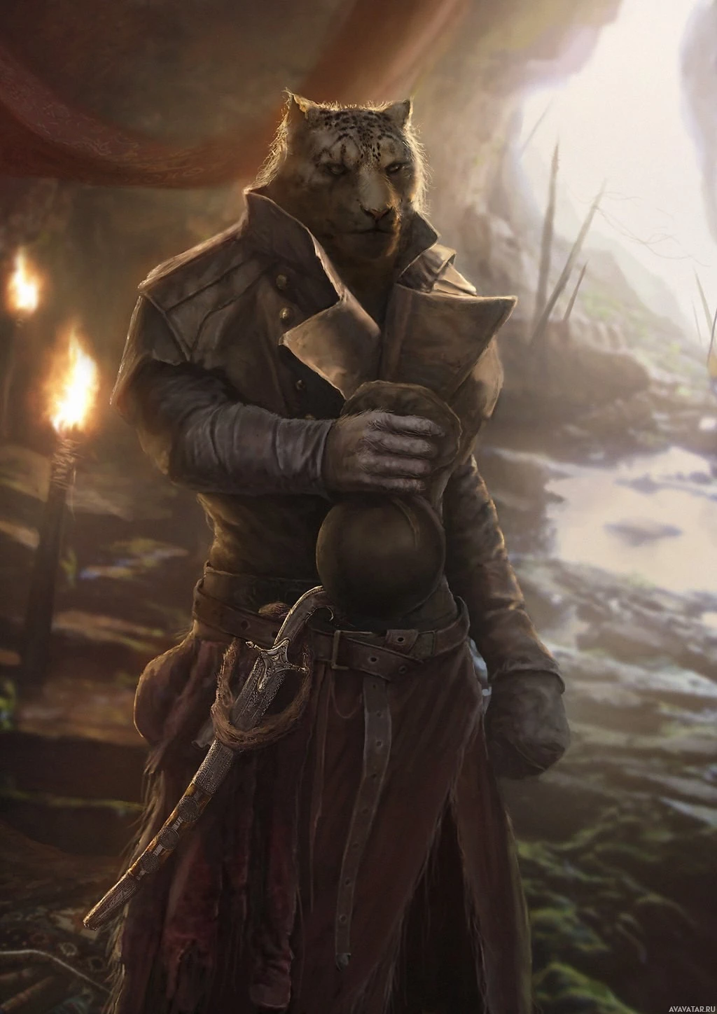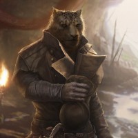 In the image, there is a character that appears to be a khajiit from