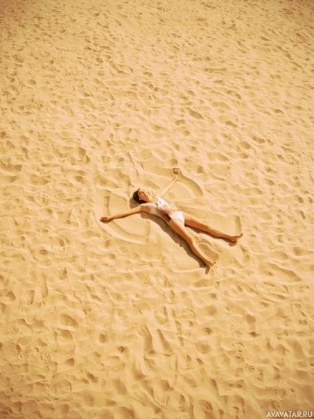 На снимке изображен человек, лежащий на песке, с расслабленными руками и ногами. Они кажутся спокойными, возможно, загорают или наслаждаются ощущением пребывания на пляже. Текст на изображении не виден.