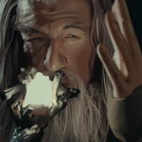 the Rings franchise. He is portrayed by actor Ian McKellen in the movies and is depicted with long