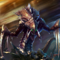 sharp claws, as seen on the character's hands, and a protective carapace. The background suggests