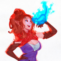 a glowing orb of light near her ear, suggesting she is performing magic or casting a spell. The character is also holding