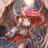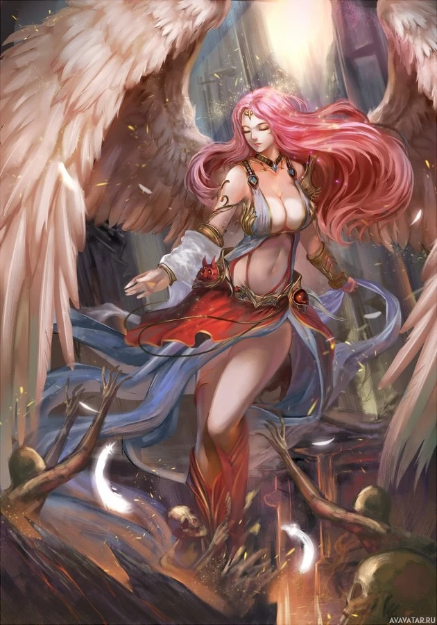 an angelic character. The character has