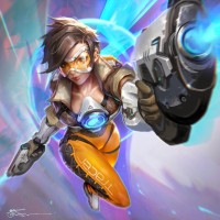 energy environment, possibly within the game's setting. This character is known as Tracer in Overwatch.