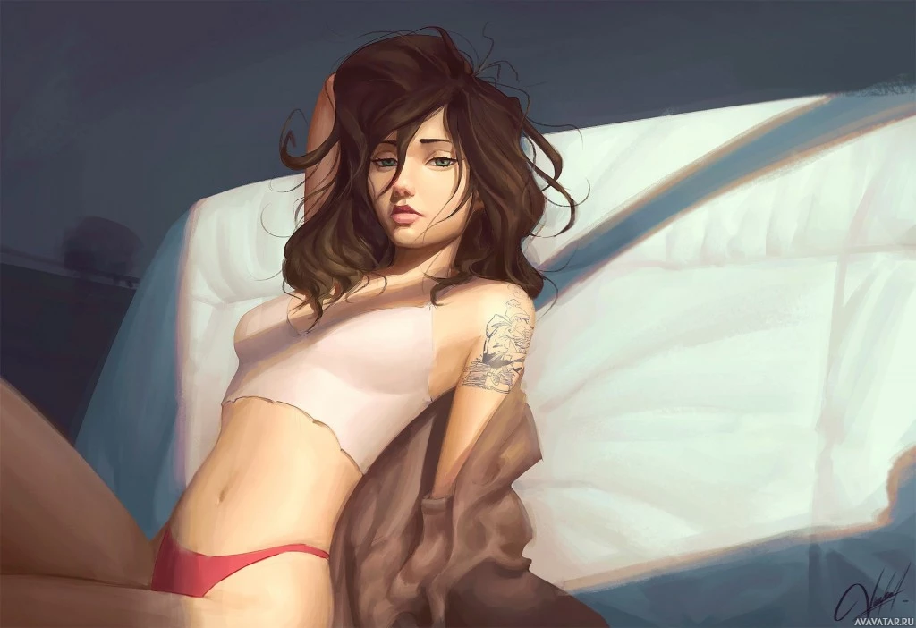 The image shows a woman lying down, seemingly in
