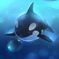 small fish or plankton depicted near the orca's head, indicating the aquatic habitat where this whale would typically feed. The image is likely created for illustrative purposes, such as a logo, an educational graphic, or an artistic piece representing