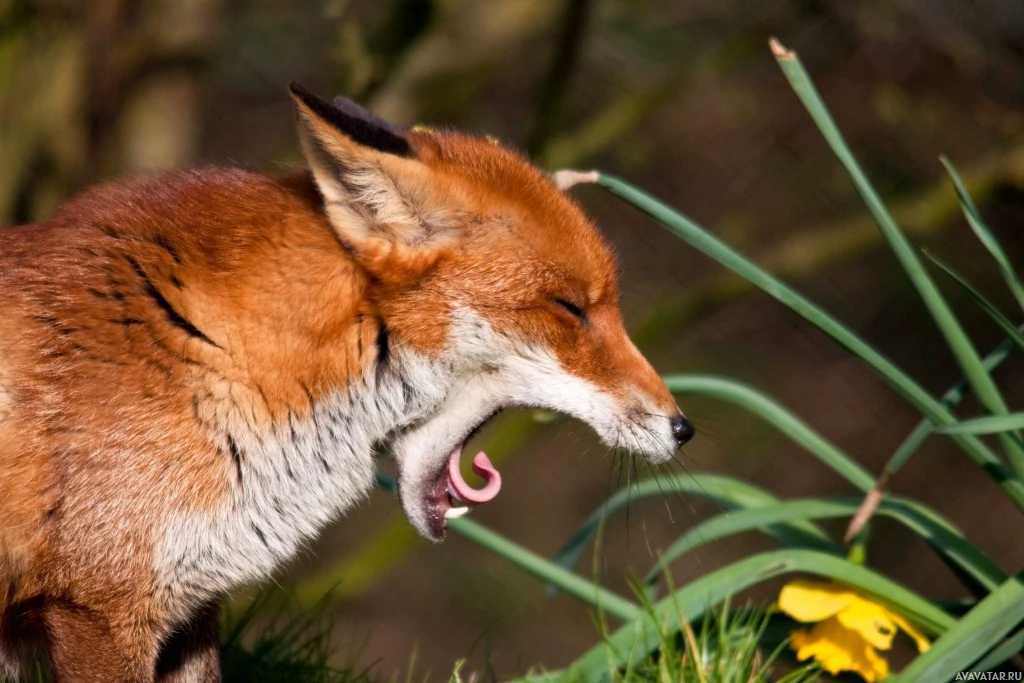 На снимке изображена лиса в дикой природе. Похоже, что он нюхает или исследует что-то на земле, возможно, еду или интересный запах. Шерсть лисы выглядит плотной, а ее цвет - типичный красный лис, с более темными красноватыми тонами.