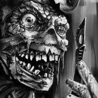 a zombie character, likely from a horror or undead-themed genre. The character appears to be decaying and has an aggressive expression with teeth exposed, suggesting that it is infected by some sort of disease or is a threat to
