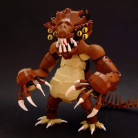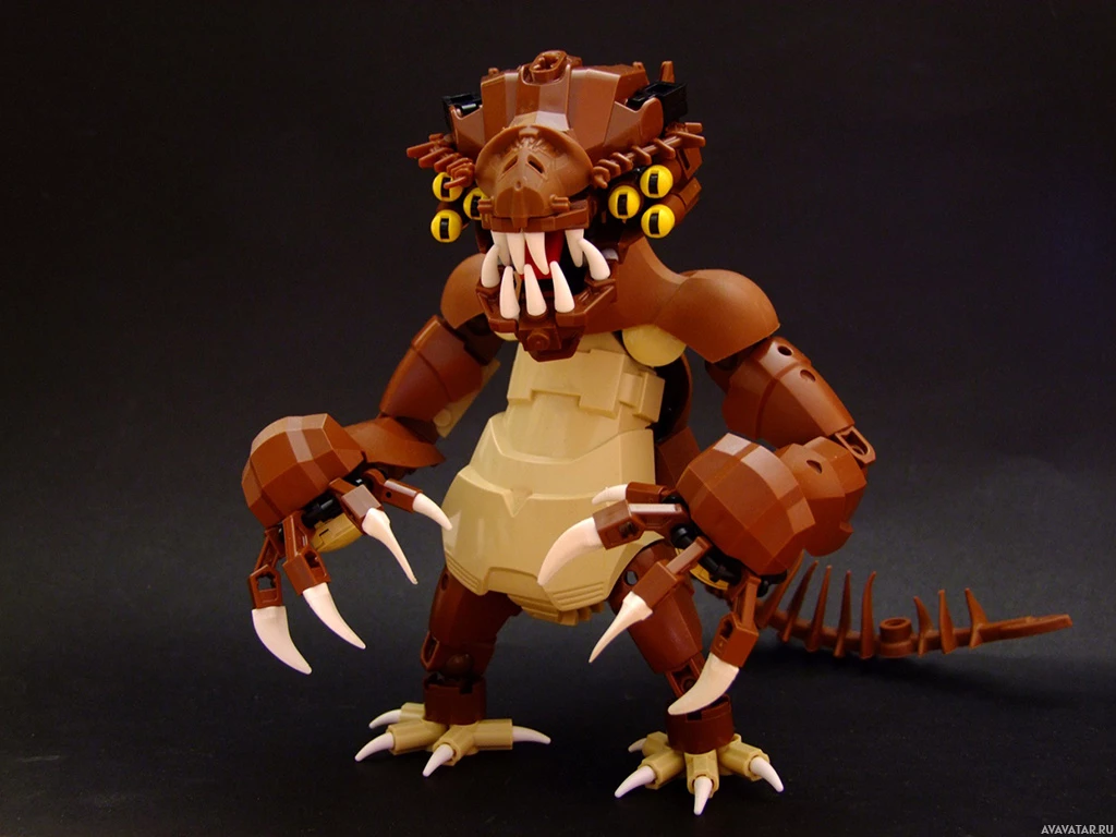 The image shows a Lego robot that resembles a creature, possibly inspired by dinosaurs or