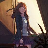 an animated character who appears to be a girl with dark hair. She's wearing a black jacket over