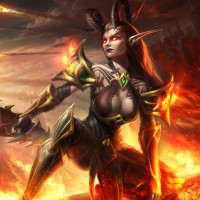 The image shows a character from the Warcraft universe, likely representing a demon or dark