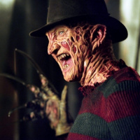 Freddy Krueger. He is wearing his signature red and black striped sweater with fingerless gloves, and there's