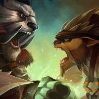 the video game "Dota 2." On the left is a character known as Tusk, who has a wolf-like appearance with