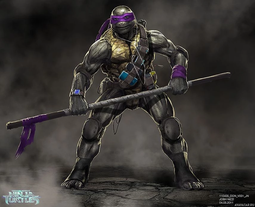 Mutant Ninja Turtles franchise. He is depicted in a stylized and muscular form, wearing his traditional