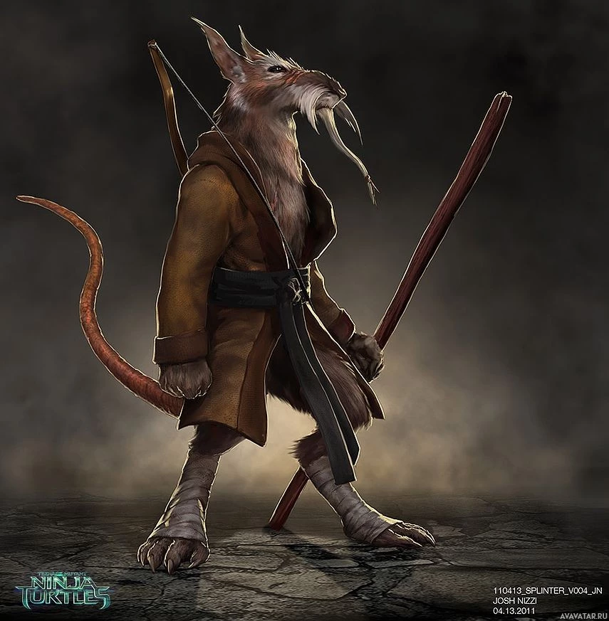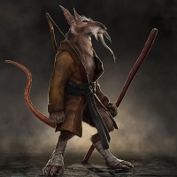 The image depicts an anthropomorphic rat standing upright and dressed in
