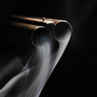 The image shows a pistol with two barrels, and there is smoke coming from the barrels. This