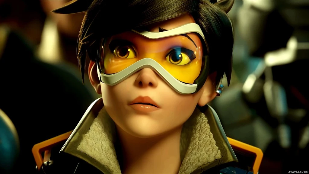 The image features an animated character known as Tracer from