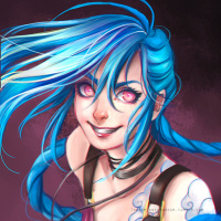 the video game "League of Legends." This character is known as Jinx in the game. She has