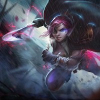a support character who provides health and shields to her teammates. The background is dark with what looks like a rainy or stormy atmosphere.