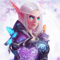 fantasy genres, and her clothing includes intricate designs and possibly symbols related to her role within a fantastical context. The background is ethereal with a blend of magical elements that contribute to the overall mystical theme of the image.