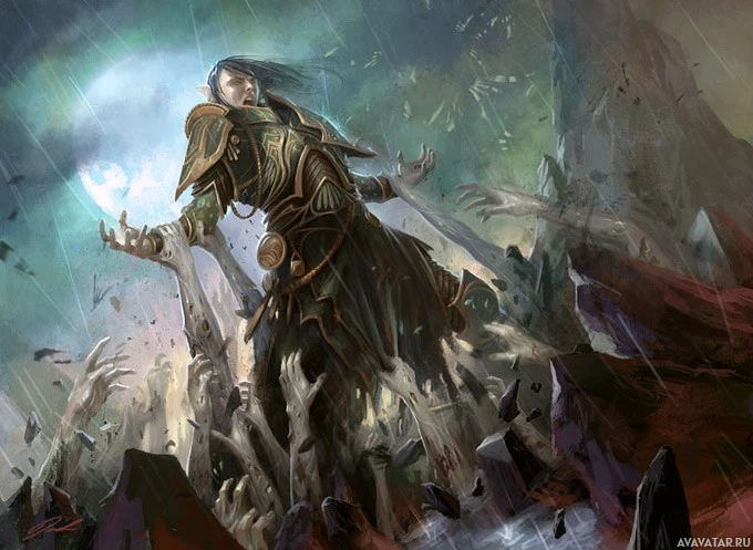 magical energy or fire at the bottom of the image. This artwork could be from