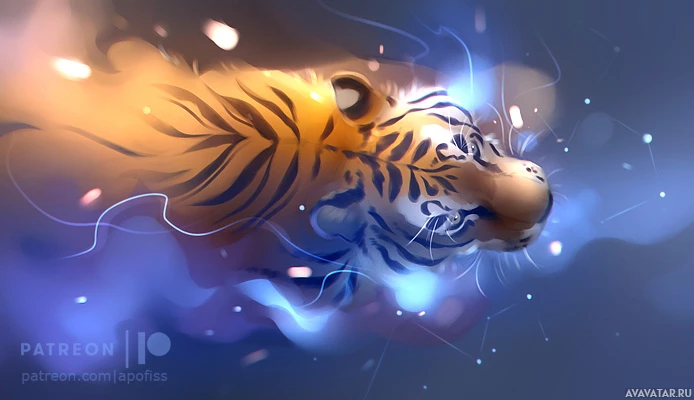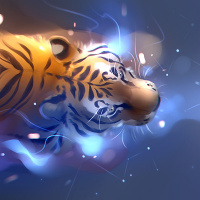 light effects that suggest energy or movement. The tiger's fur appears to be styled with dynamic strokes, enhancing