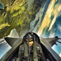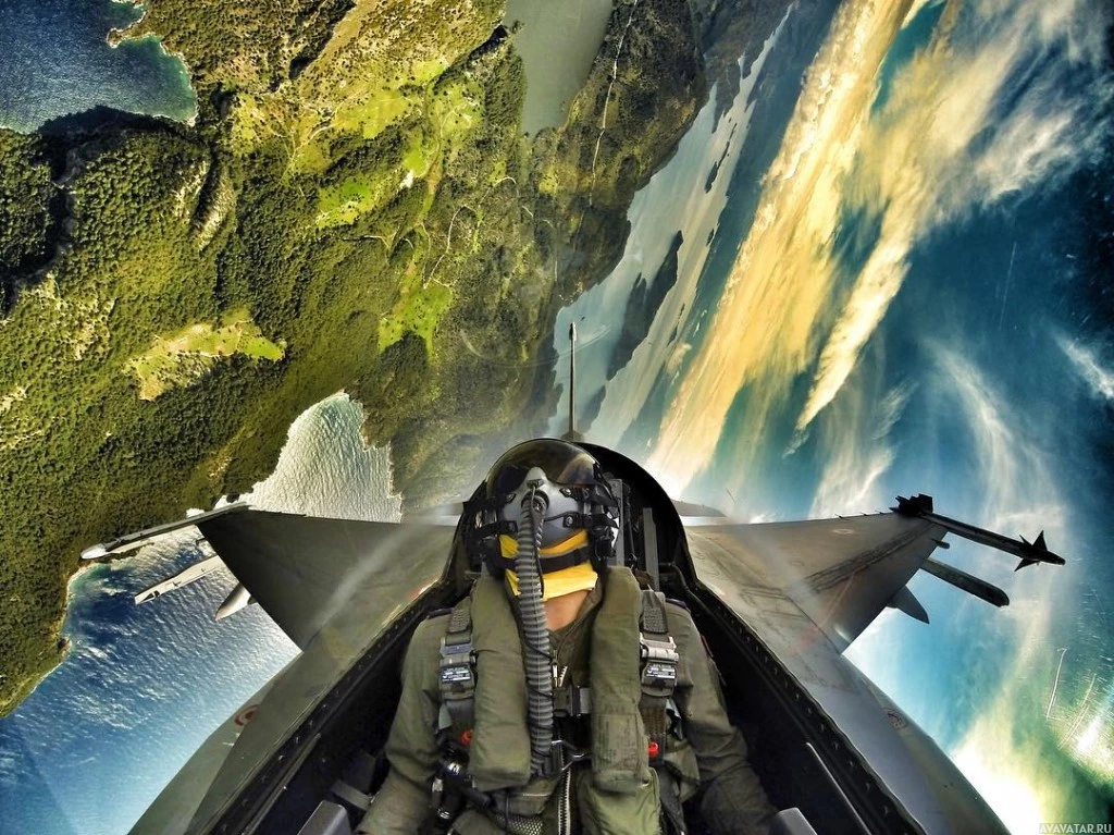 a fighter jet. The individual is wearing