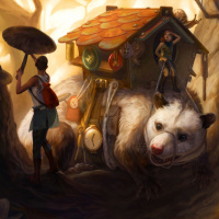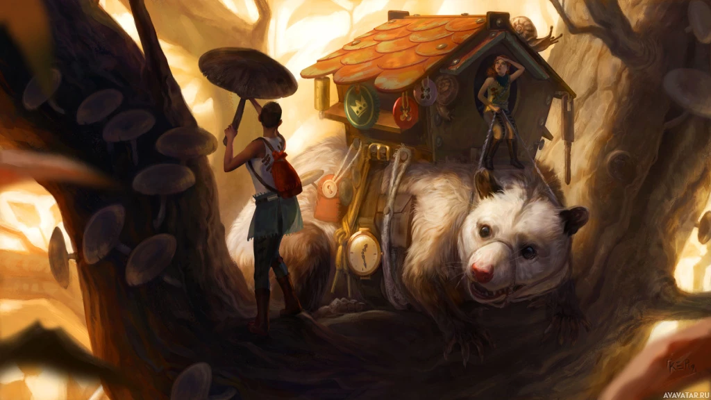 an animal character alongside a human is indicative of a fantasy theme. The overall composition of the image creates a charming, imaginative scene that could be part of a story or a piece of