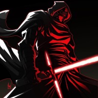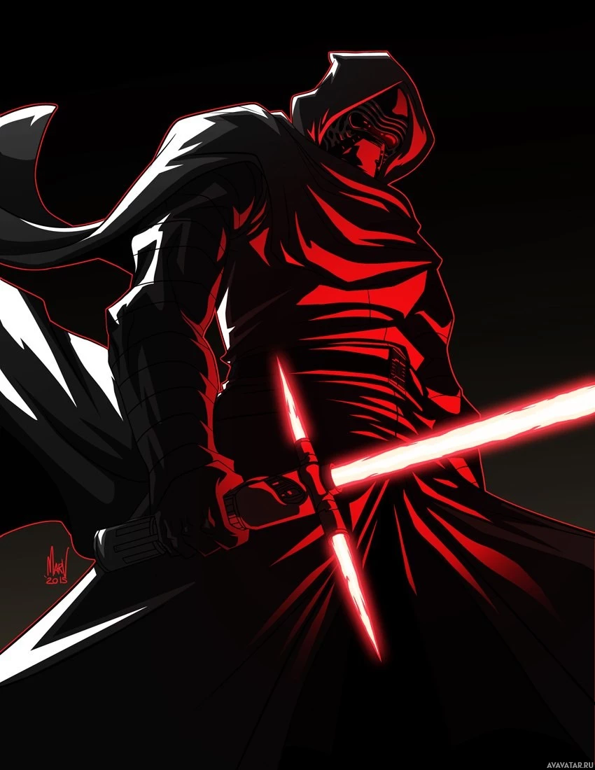 red lightsaber in hand. The art style appears to be influenced by comic book illustrations, giving it a more dynamic and stylized look compared to traditional film stills or