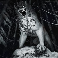 Картинка показывает монстра, который кажется оборотнем. Он показан в темной, лесистой обстановке со снегом на земле. Существо имеет агрессивное выражение, и его мех выглядит лохматым и угрожающим. Это представление темы ужасов, обычно ассоциируемой с оборотнями в фольклоре и популярной культуре.