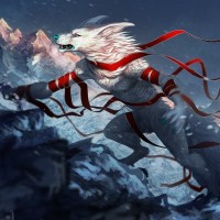 pointed ears and eyes, which are typical for werewolves in fantasy settings. The overall atmosphere of the image is one of mystery and the supernatural, fitting within the fantasy genre.